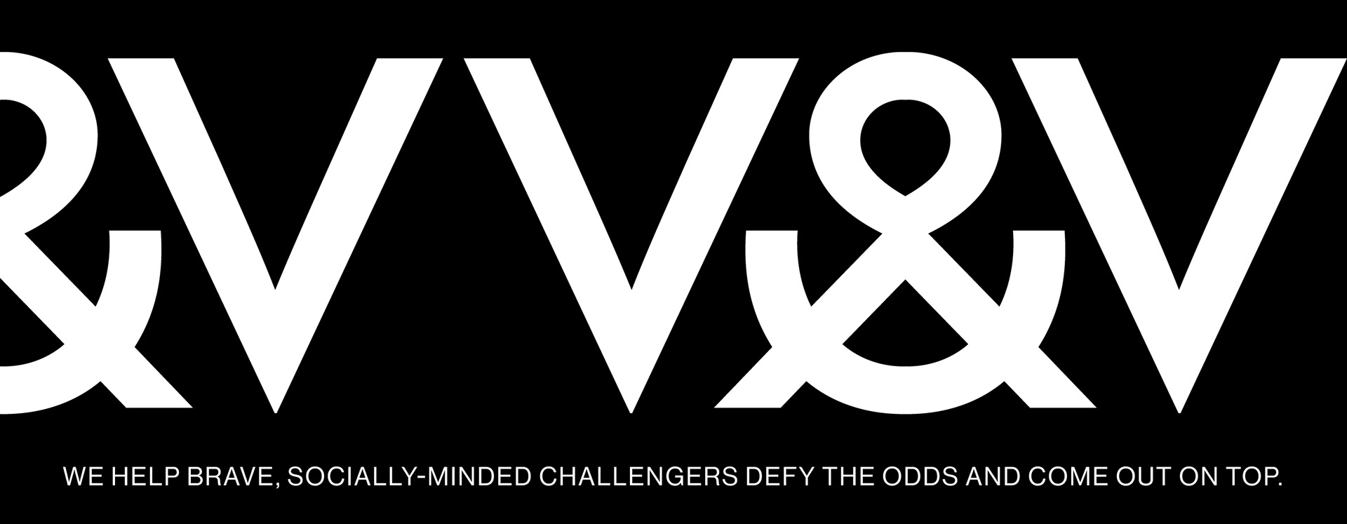 When I joined the team, a core element of the company was a logo that referenced a slingshot, a metaphor deeply ingrained in the company ethos, inspired by the myth of David and Goliath. We retained this, using an "ampersand slingshot" as the core of our logo, encircled by two V's, which also represent the number 5 in Roman numerals. This logo is a "palindrome" as it can be mirrored and remain the same. When used on edges, we created a variation that showcases a half-split logo.